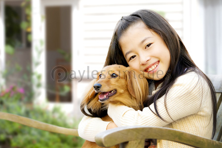 犬を抱っこする女の子 ストックフォトの定額制ペイレスイメージズ